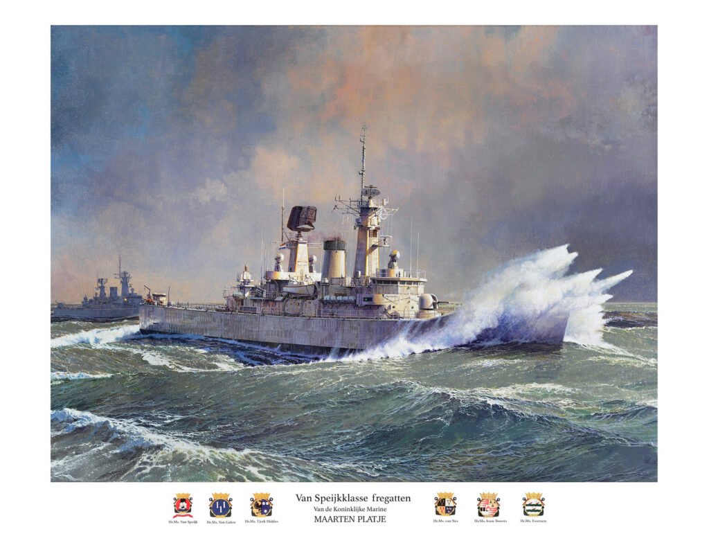 The six Van Speijk class frigates were model for the slightly larger English Leander class frigates. They differed from the Leanders by the wider navigation bridge and the Dutch radars and antennas. They were important ships for the Royal Navy, which would set the tone for later Dutch naval vessels. They were the first ships with a fire control computer on board and the first frigates equipped with guided weapons and an on-board helicopter. The ships were extensively renovated between the years 1977 and 1983 (the midlife modernization). The class was hereafter also called the MLM class. A 76 mm gun came on board. Harpoon surface-to-air missiles and torpedoes were also added to the arsenal. The depth charge mortar on the aft deck had made way for the enlarged helideck for the Lynx helicopter. The crew strength was sharply reduced from 256 to 185 men. In the late 1980s the ships were sold to Indonesia, where they are still in service.